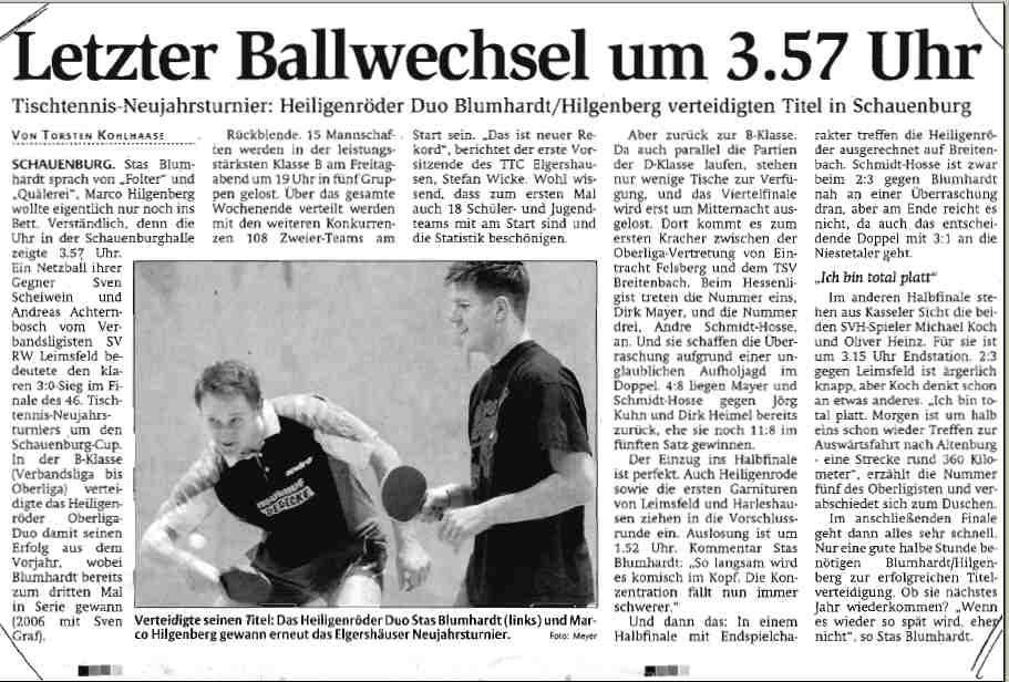 (West) und Köbele (Süd). Im ersten Einzel traf ich auf
