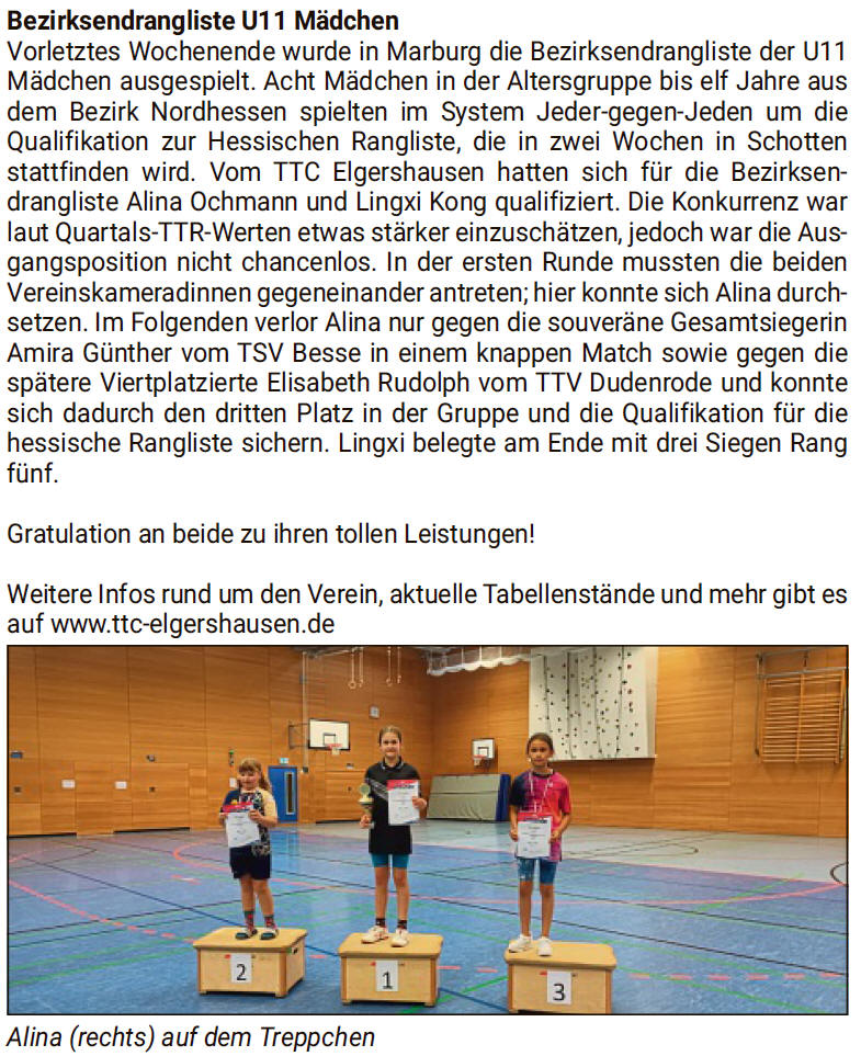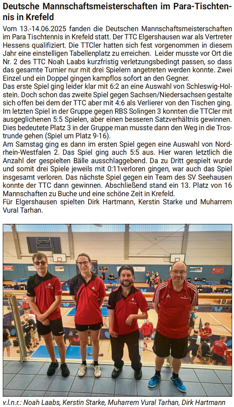 | Juli | Tischtennisspieler aus Elgershausen auf Rang elf (...mehr) |