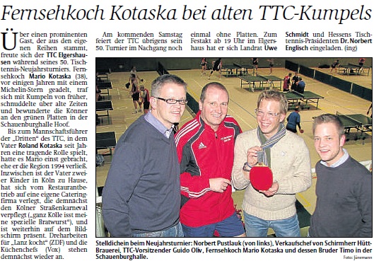 Mario Kotaska als Gast und Spieler beim 50. Tischtennisneujahrsturnier |