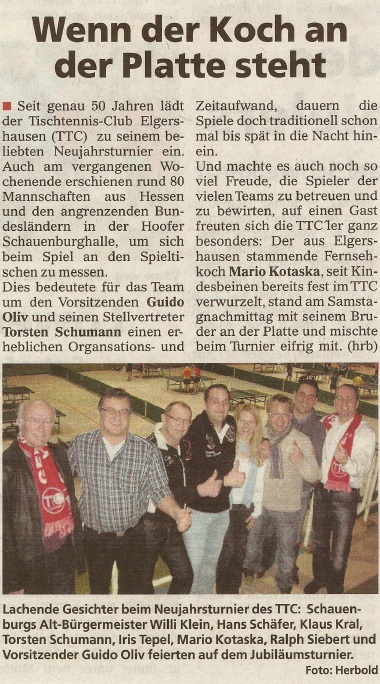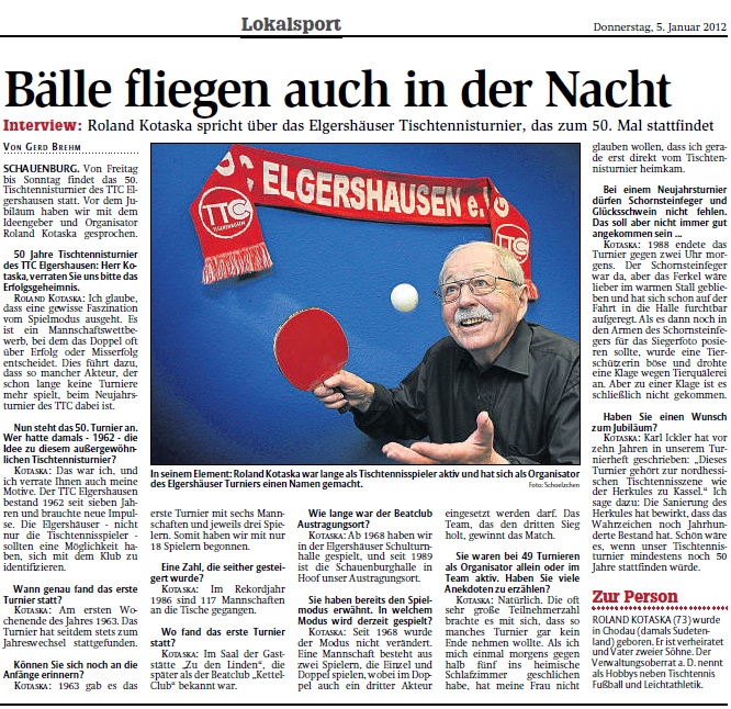 Zeitungsartikel der HNA mit Roland Kotaska im Interview im Bezug auf das 50.Tischtennisneujahrsturnier |