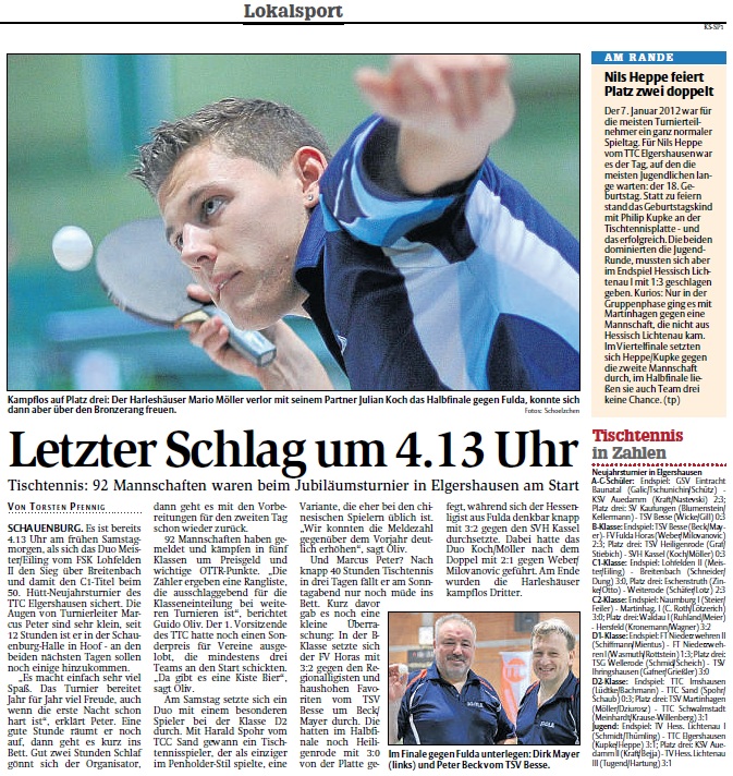 Abschließender Artikel der HNA zum 50. Tischtennisneujahrsturnier |